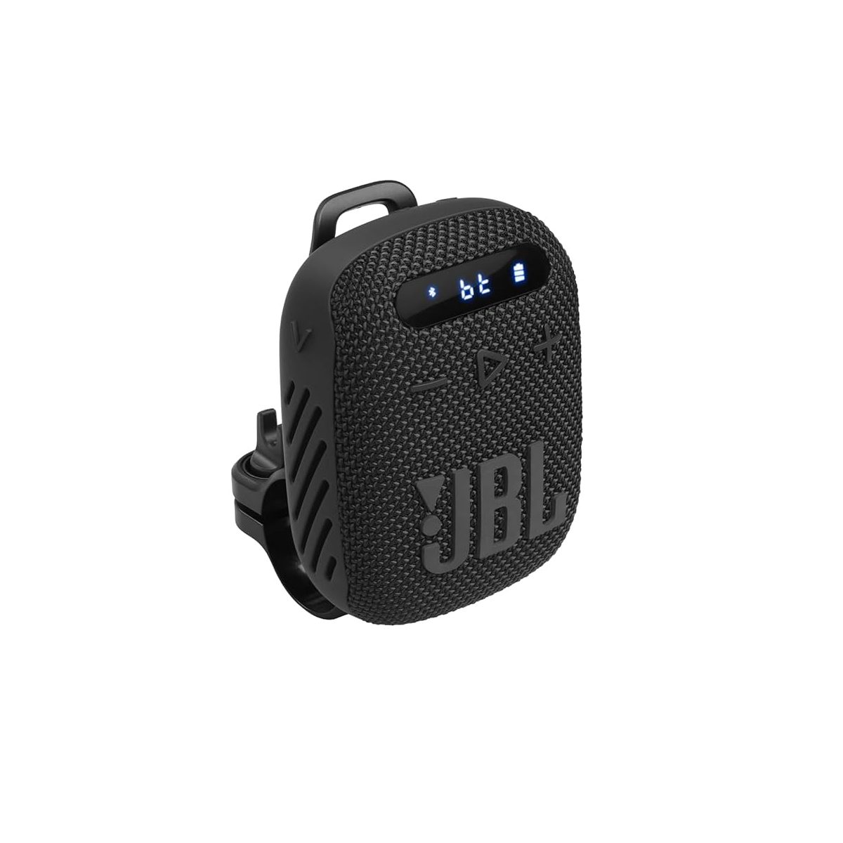 The JBL Wind 3 is a rugged, portable Bluetooth speaker made especially for outdoor use and cycling. It clamps onto bike handlebars but can also be clipped to a backpack strap. It’s waterproof and dustproof (IP67), and supports multiple playback modes like Bluetooth streaming, FM radio, AUX input, and TF/microSD card.