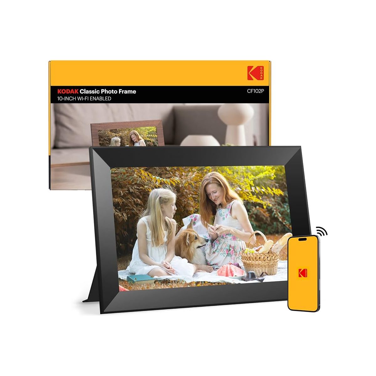 The Kodak 10 Inch Digital Photo Frame is a user-friendly display device designed to showcase digital photos and videos, featuring a clear 10-inch screen, slideshow functions, and easy plug-and-play operation for home or office use.