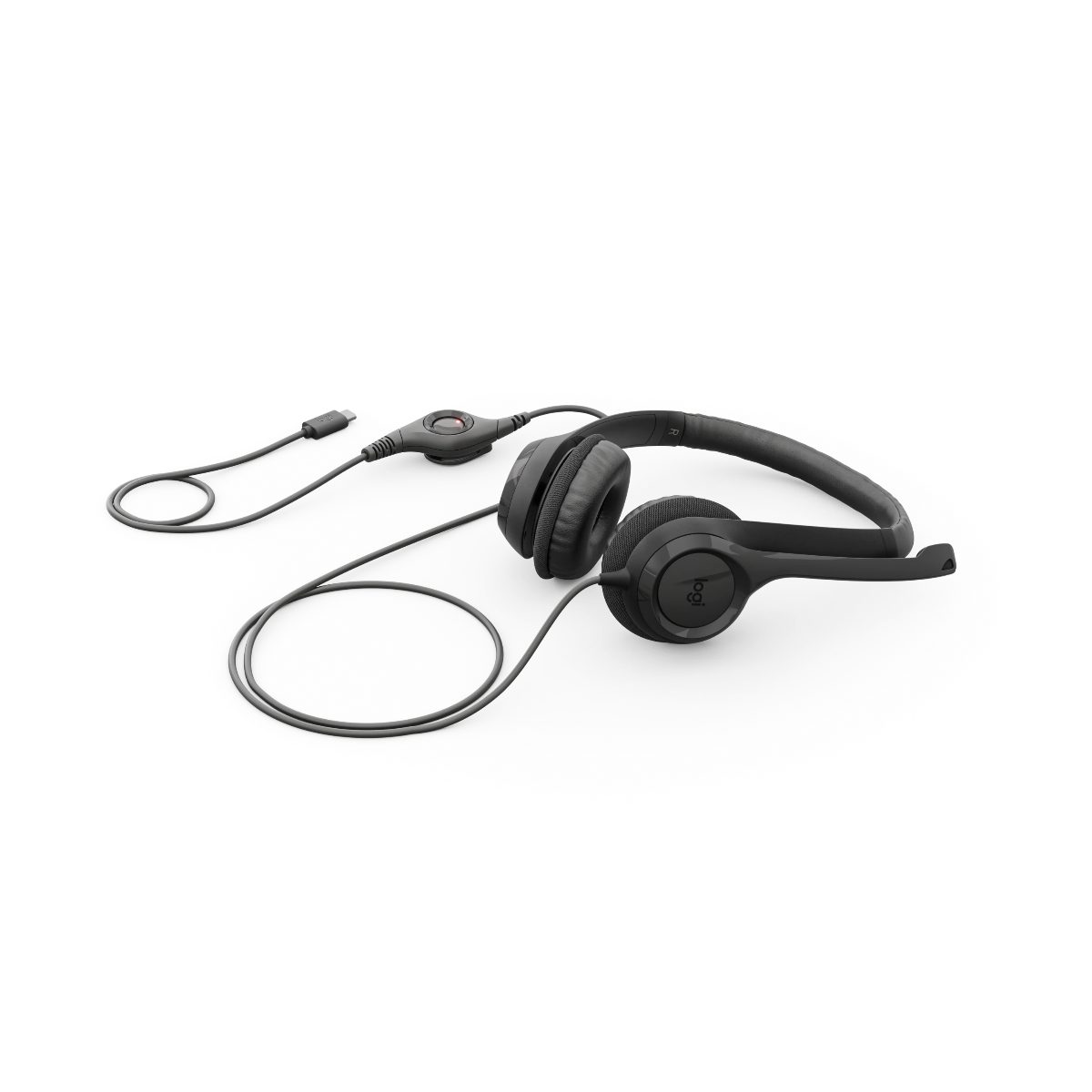 The Logitech H390 USB Computer Headset (Black) is a wired headset with a USB‑A connection. It features a noise‑cancelling boom microphone, in‑line volume and mute controls, and cushioned ear pads and headband for comfortable use.