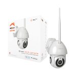 The Nexxt Smart Outdoor NHC-OP30DL is a Wi-Fi security camera with HD video resolution, built-in dual LED floodlights, motion detection, night vision, two-way audio, and remote access via the Nexxt Home app, providing enhanced outdoor monitoring and deterrence.