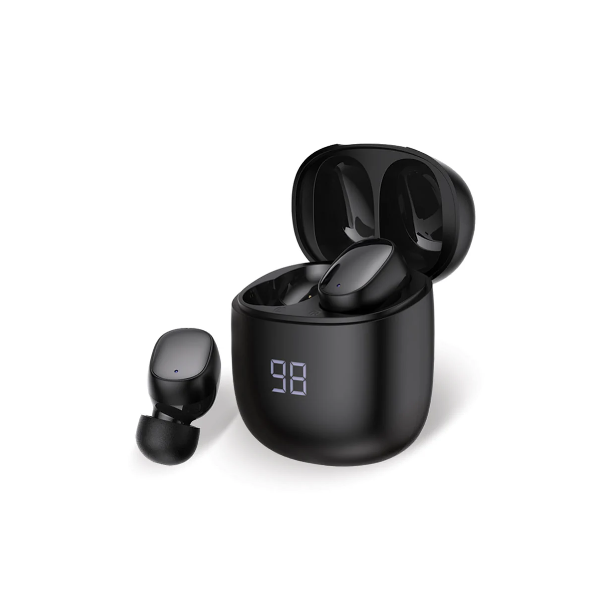 They are true wireless (no wires) Bluetooth 5.3 earbuds with built‑in AI ENC (environmental noise cancellation) for clearer calls. They also include a low‑latency “gaming mode” (~50 ms) for better sync between audio and video. There is an LED screen on the charging case that shows battery status. The earbuds themselves last about 6 hours on a charge, with another ~14 hours provided by the charging case (for a total of ~20 hours)