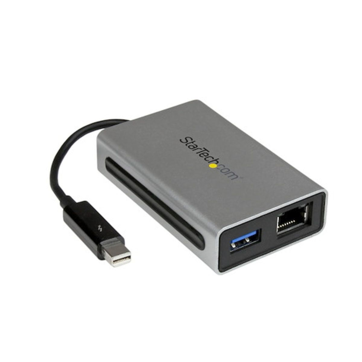 The StarTech Thunderbolt to Gigabit Ethernet Adapter adds a wired 1 Gbps Ethernet port and a USB 3.0 port to devices with Thunderbolt 1 or 2. It’s bus-powered and ideal for older Macs or PCs needing network and USB connections.