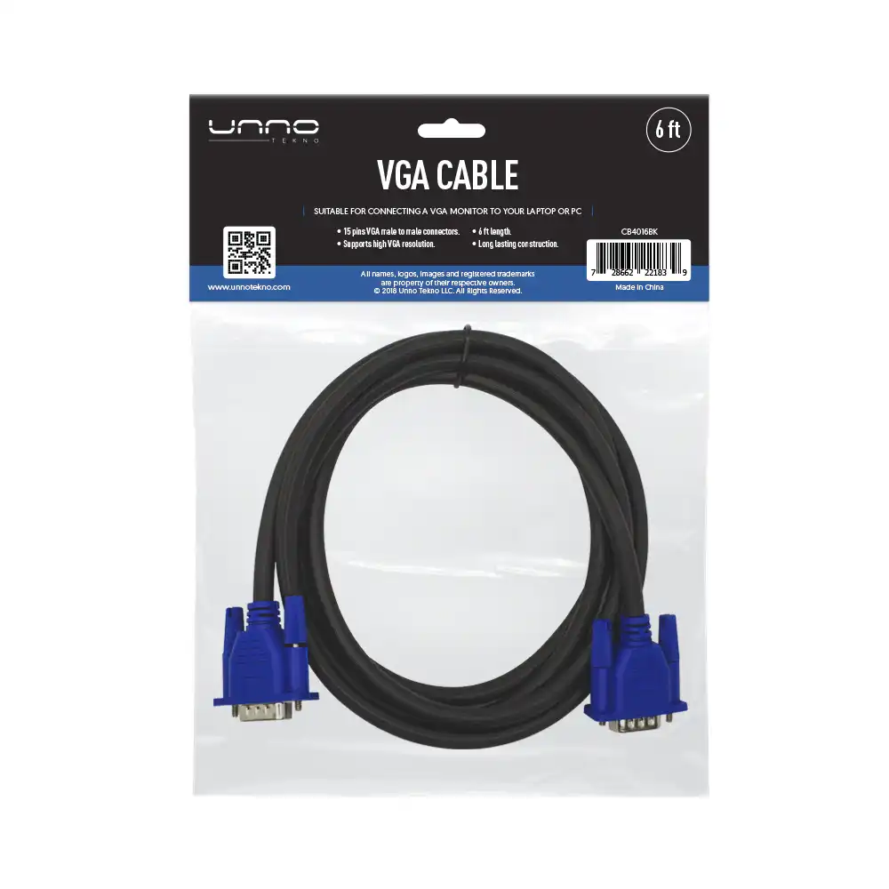 UnnoTekno CB4016BK VGA Cable – 6ft